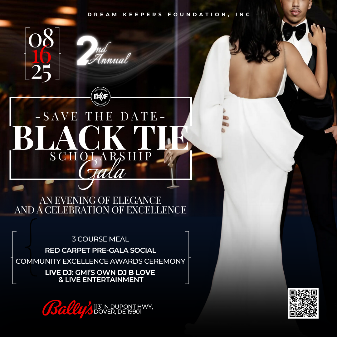 On Saturday, August 16, 2025 the Dream Keepers Foundation hosted the 2nd Annual Black Tie Scholarship Gala to raise funds to support scholarships for college-bound students who will be attending four-year institutions, and students matriculating at trade schools and pursuing career certification programs. Held at Bally’s Casino Resort in Dover, Delaware. The event, promoted as “an evening of elegance and a celebration of excellence,” featured an arrival social, a red-carpet photoshoot, a Community Excellence Awards Ceremony, and live entertainment by D. Best Live , Maryland's premier live band. 350 patrons helped raise more than $8,000 for the cause. In addition to the funds raised, the foundation issued $6,500 in scholarships during the event.
